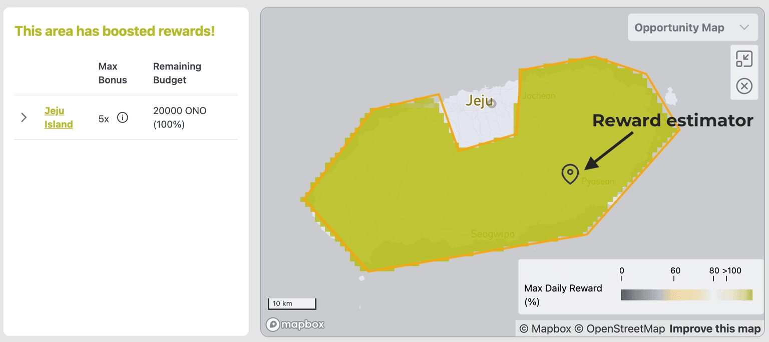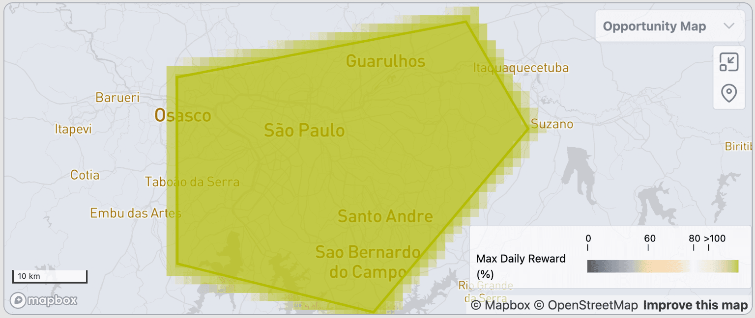 A High Value Area is a clearly defined zone on the onocoy opportunity map where new qualifying stations receive a temporary reward multiplier. This multiplier is added on top of the normal base reward and streak appreciation.